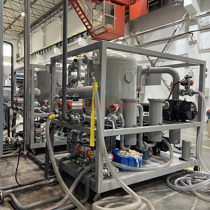 霧化分離:加熱后的油液通過二級過濾器進入螺旋噴淋霧化系統,形成霧狀油滴,在真空分離室內實現立體、多層蒸發,快速分離水分和氣體。